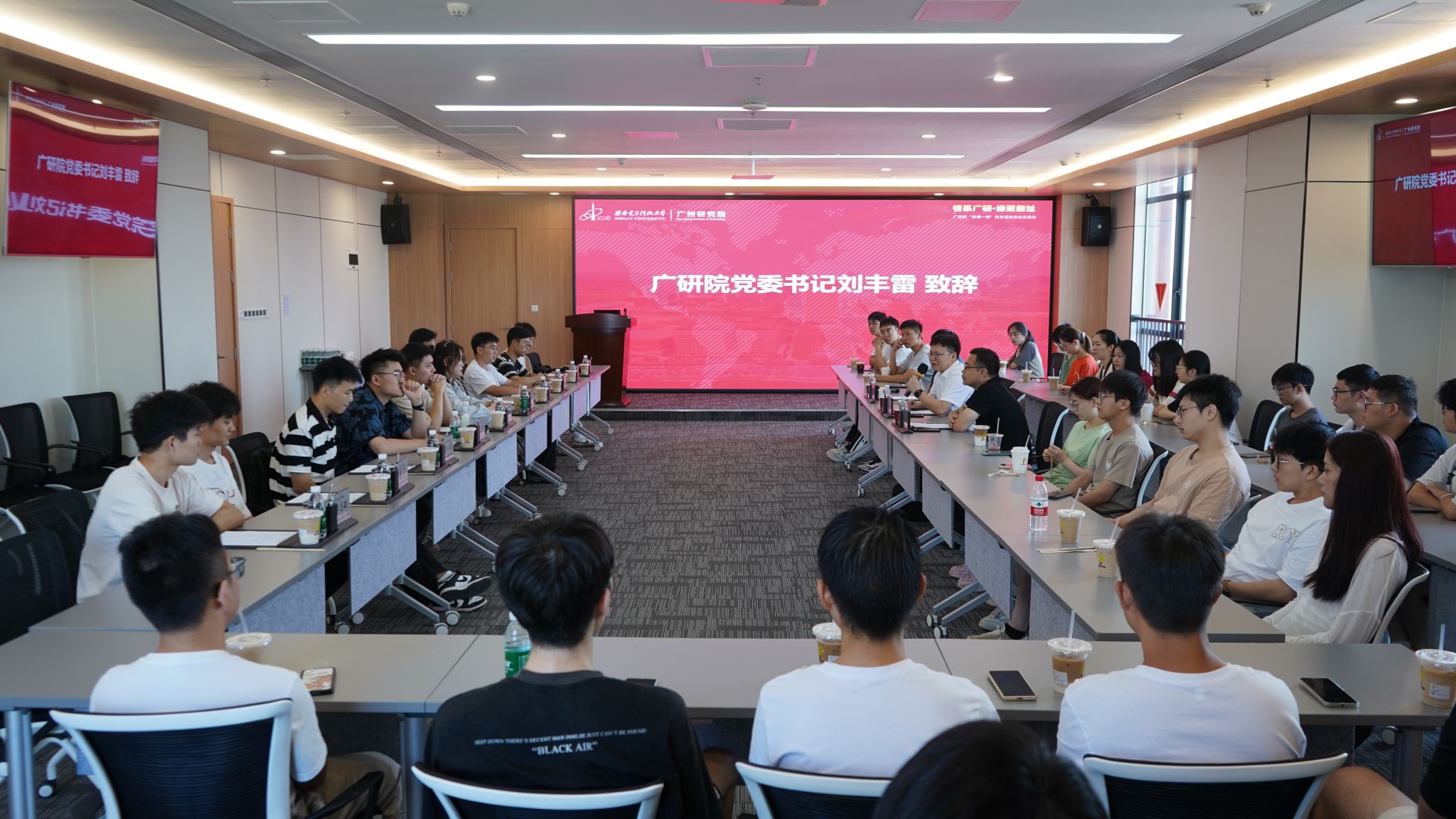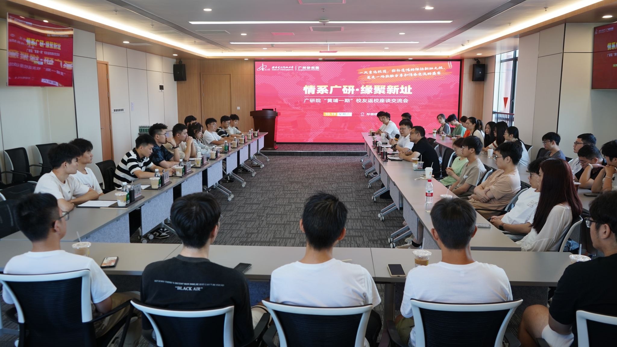 10月19日上午,广研院“情系广研·缘聚新址”‘黄埔一期’校友返校座谈交流会在厚德楼1914会议室举行,西电广研院‘黄埔一期’12名校友踏浪归来,在新址重聚。西电广研院党委书记刘丰雷出席座谈会并讲话、2020级辅导员以及2022级、2023级研究生代表参加座谈会。