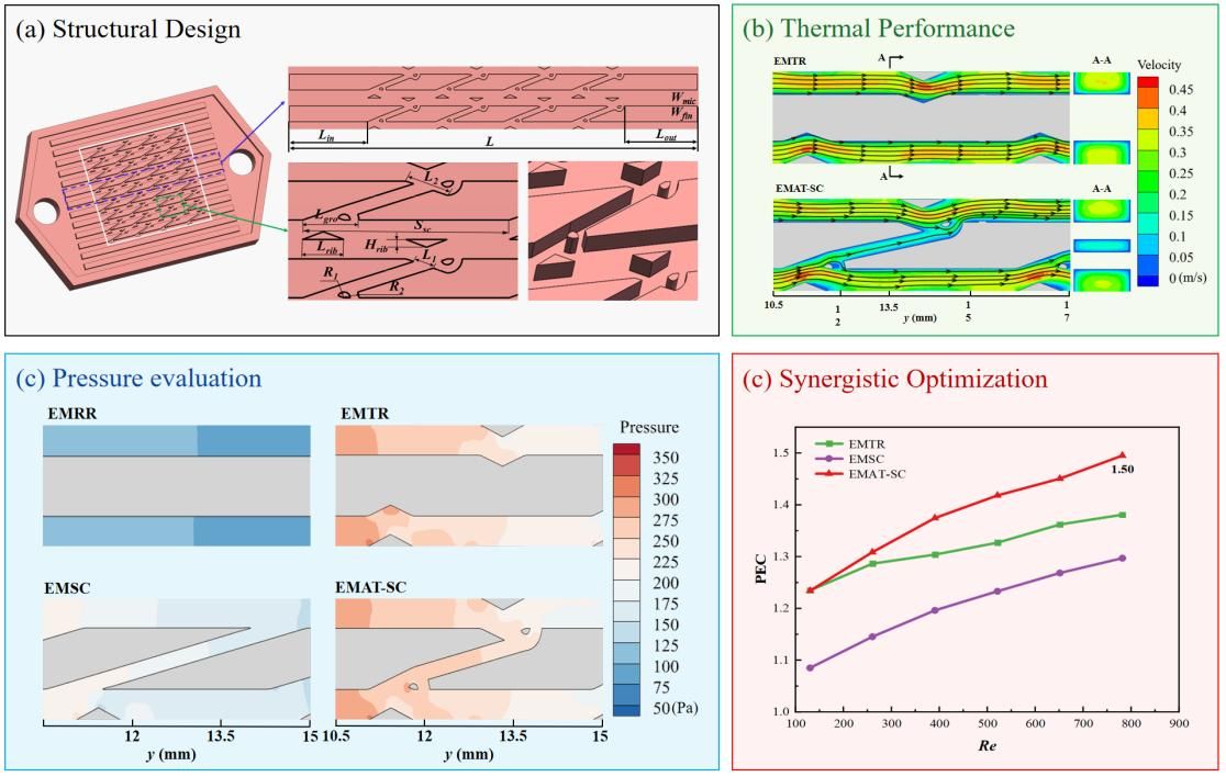 近日,西电广研院段宝岩院士团队王从思教授、陈竞覃副教授等在高功率嵌入式散热领域取得突破性进展,研究成果以“Synergistic thermo-hydraulic optimization of embedded microchannels: Balancing chip cooling efficiency and pressure fluctuation resistance”为题发表于工程技术领域国际顶级期刊《Energy》(Volume 330, September 2025, 136775)。该研究采用微通道结构成功实现了近年来最高的综合热性能评价系数,显著提升了电子器件内部散热效能,为高功率器件模组热设计提供了全新方案。论文共同通信作者为陈竞覃副教授和王从思教授,第一作者为博士研究生杨兴。