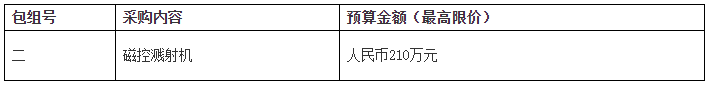 磁控溅射机采购项目(二次)进行公开招标采购,欢迎符合资格条件的投标人投标。