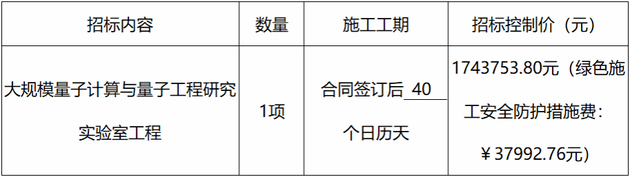 2.项目名称:大规模量子计算与量子工程研究实验室工程