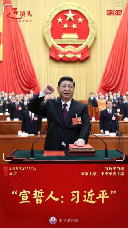 2018年3月17日,习近平主席在人民大会堂进行了庄严的宪法宣誓。这是人民共和国历史上国家主席首次进行的宪法宣誓,充分体现了党的十八大以来以习近平同志为核心的党中央对法治建设的高度重视。在党中央的领导下,中国已经走出了一条具有中国特色的法治道路。
